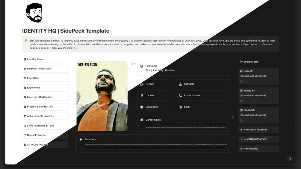 Professional Notion Resume Template | IDENTITY HQ SidePeek Edition